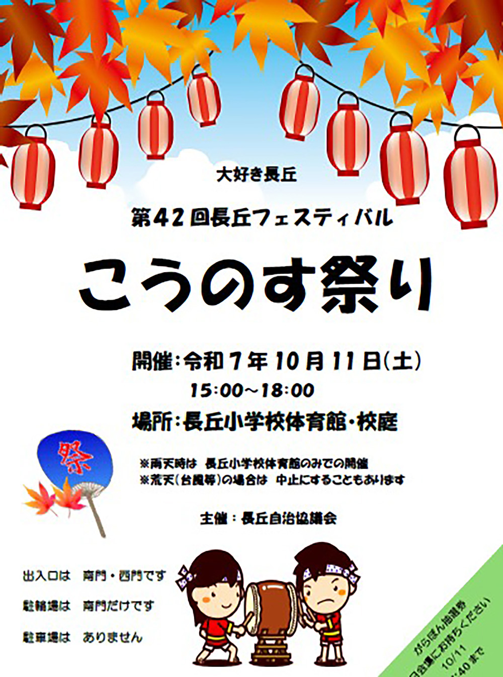 - こうのす祭り 2025年10月11日(土) 午後3時 会場:長丘小学校