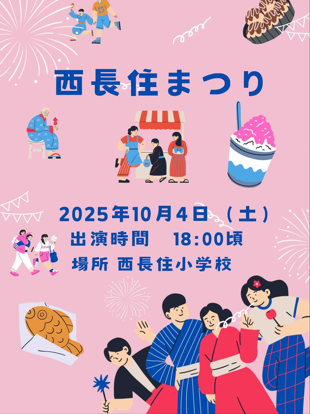 - 西長住まつり 2025年10月4日(土) 午後5時 会場:西長住小学校