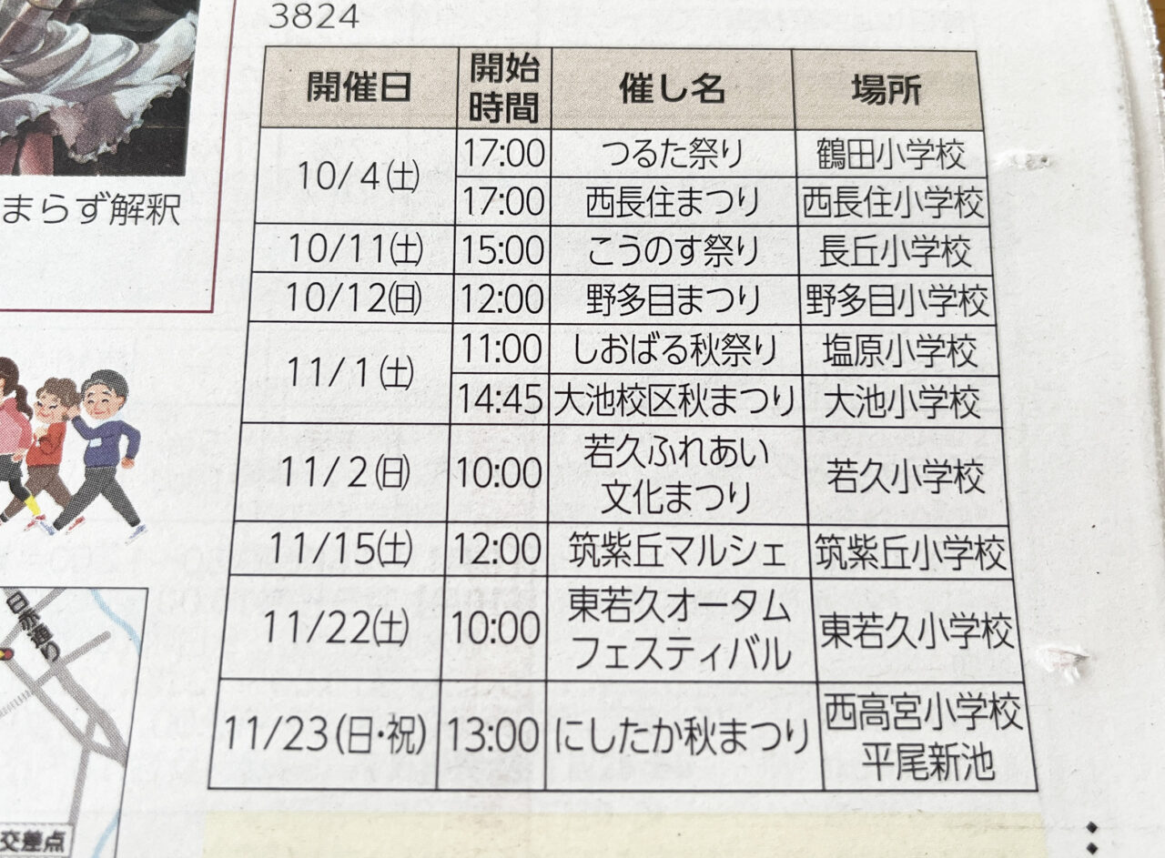 【福岡市南区】南区校区の秋祭り情報♪ 鶴田・西長住・長丘・野多目・塩原・大池・若久・筑紫丘・東若久・西高宮校区で10~11月に開催
