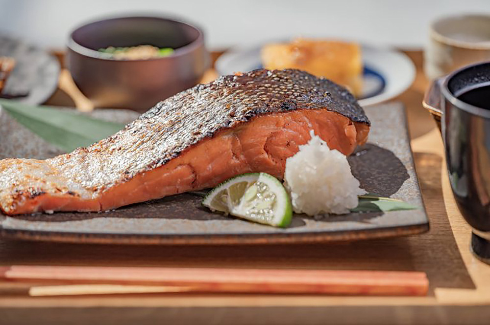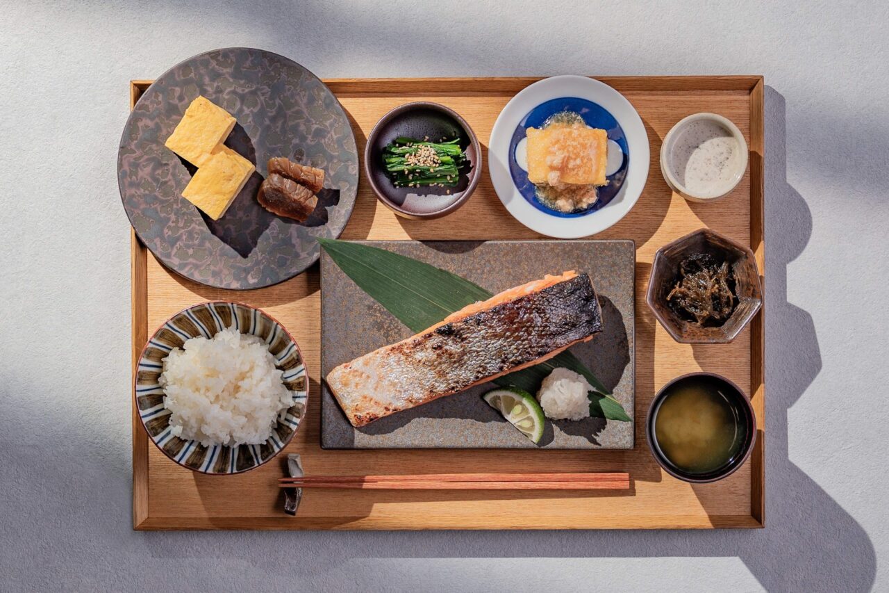 初回開催時も好評だった「朝食御膳」が今回も数量限定で登場。今回は、福岡・六本松の人気店「炉端ノいとおかし」とコラボレーションした特別メニューが楽しめますよ。炭火で焼き上げた銀鮭がメインとなる朝食御膳にご注目ください。