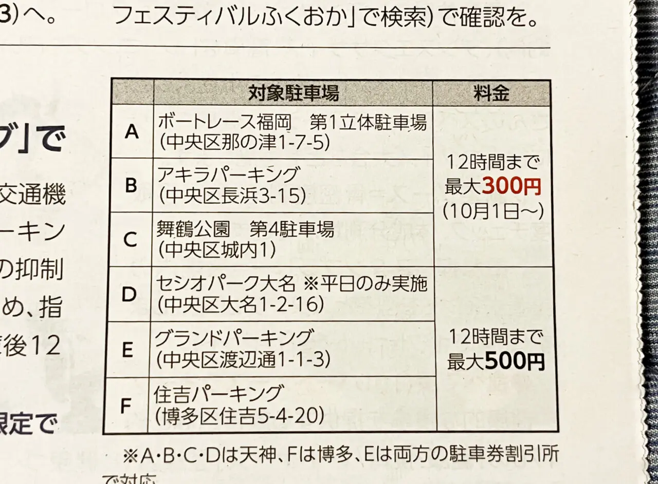 【福岡市】天神・博多に車で行くなら「フリンジパーキング」がオトク♪ 12時間で最大500円。一部の駐車場は最大500円から300円に引き下げる社会実験中