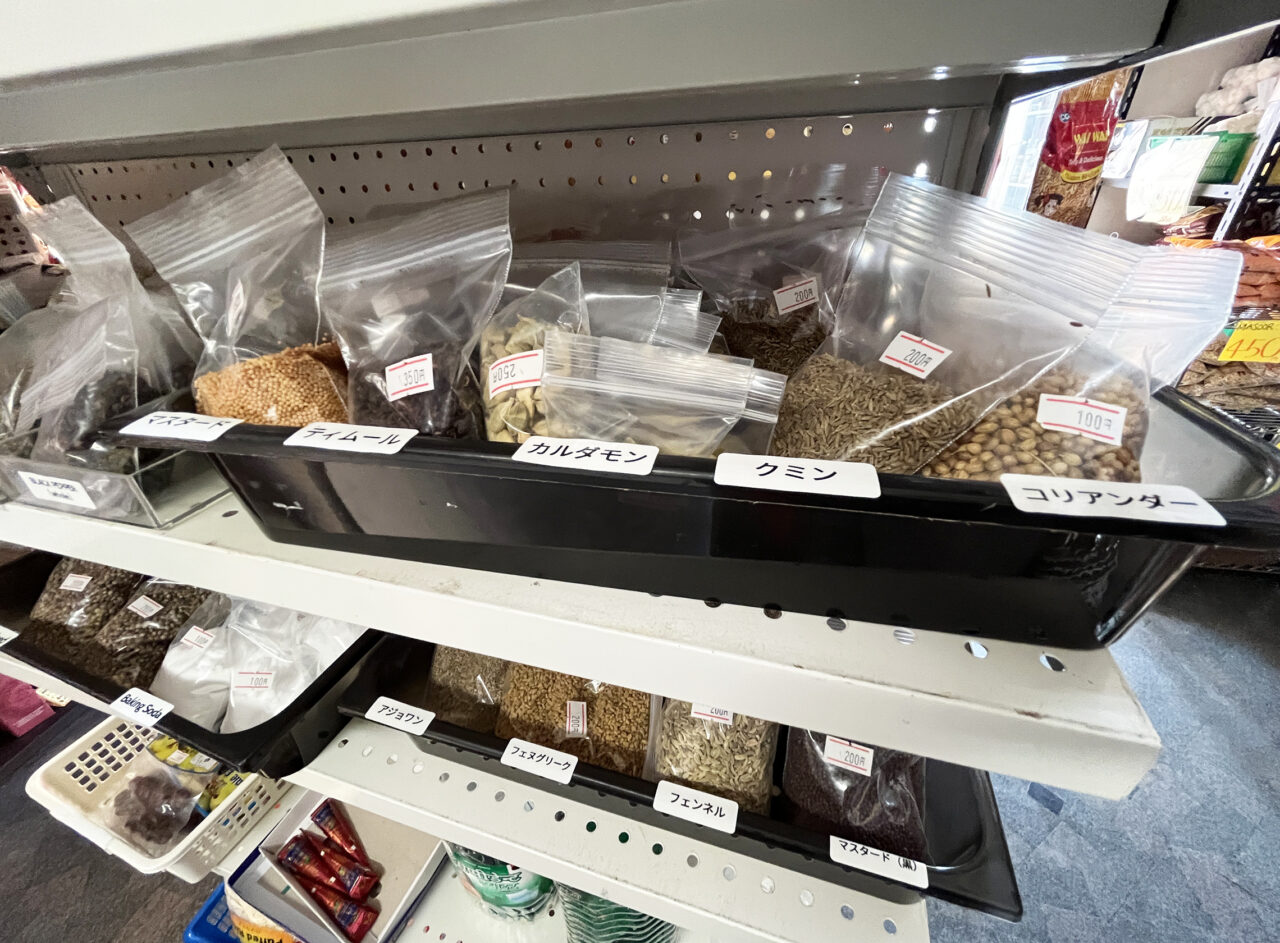 たくさんのスパイス類が大袋で販売されていますが、大袋だと使い切れない方も多いという事で、小分けにし比較的安価のスパイスも。小袋なのでちょっとお試しに購入できるのが嬉しい。一般の方以外にもカレー店などお店の方々も買いに訪れるということですよ。