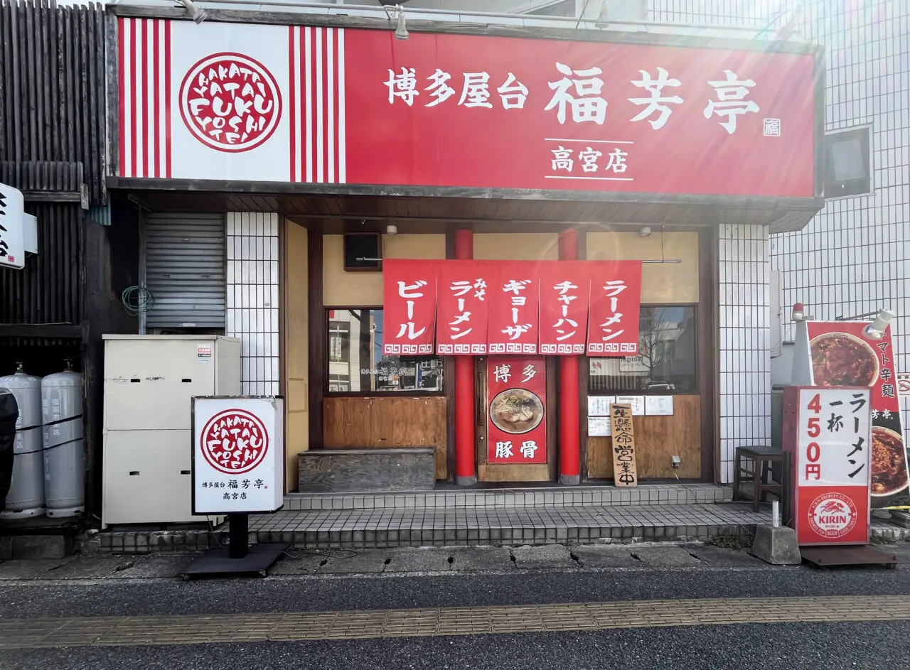 「博多屋台 福芳亭」は一時は福岡市内に6店舗ほど展開していたラーメンチェーン店でしたが、2025年現在では東区の「香住ケ丘」と「高宮店」の2店舗のみの営業。気軽に楽しめるお店が近隣にあって嬉しい限りです。