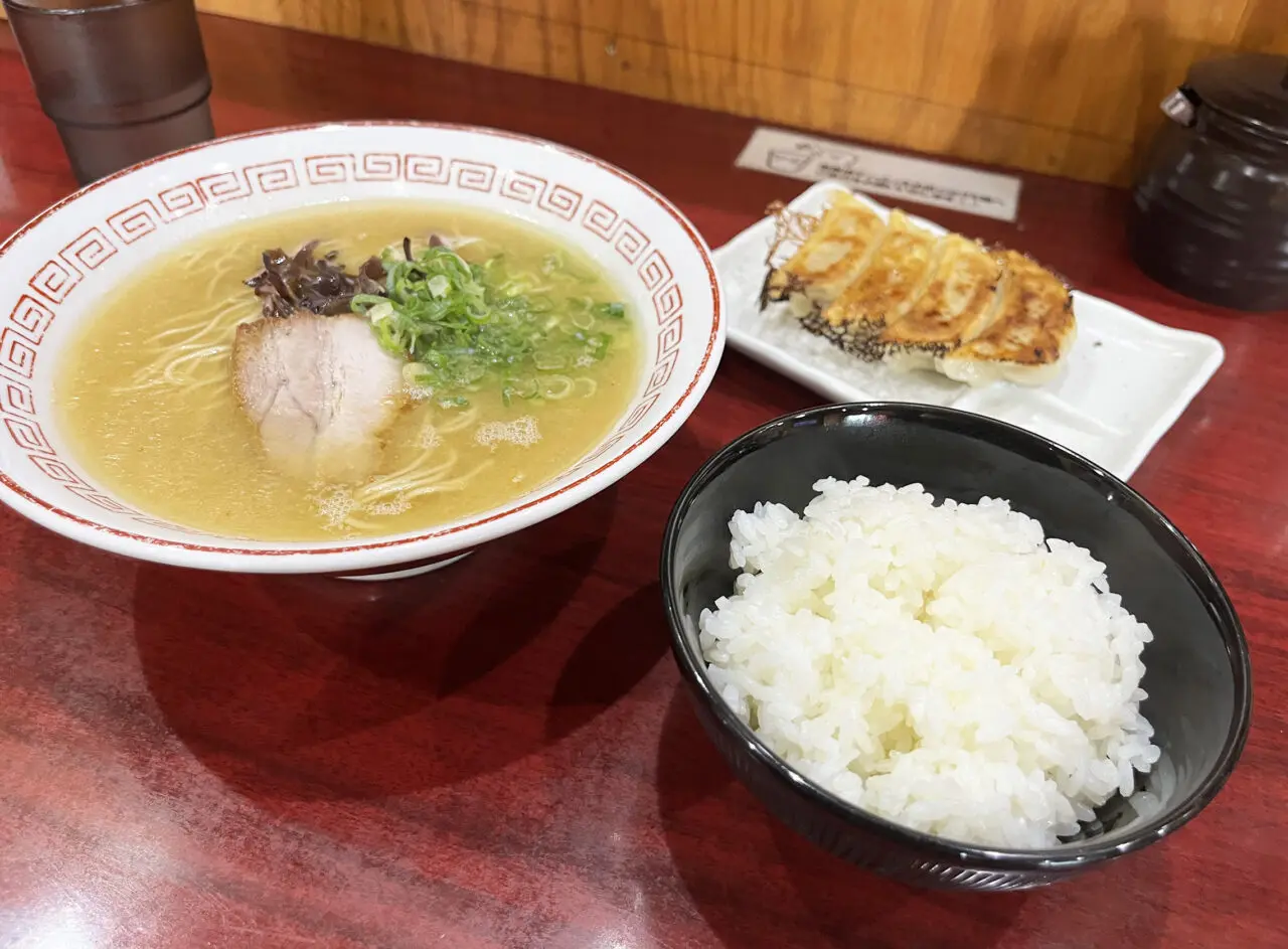 せっかくなのでらーめんとギョウザセットを注文しました。+390円で餃子が4個と白ご飯が付いてきます。ラーメンは1杯490円、大盛は税込620円、替玉は130円です。