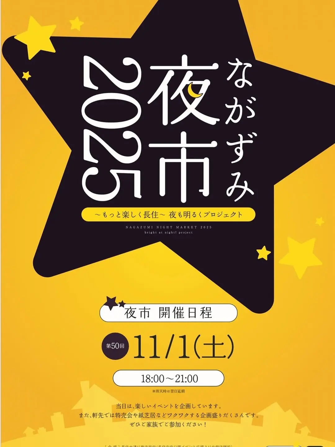 長住大通り商店街の一大イベント「ながずみ夜市2025」が2025年11月に開催されます!