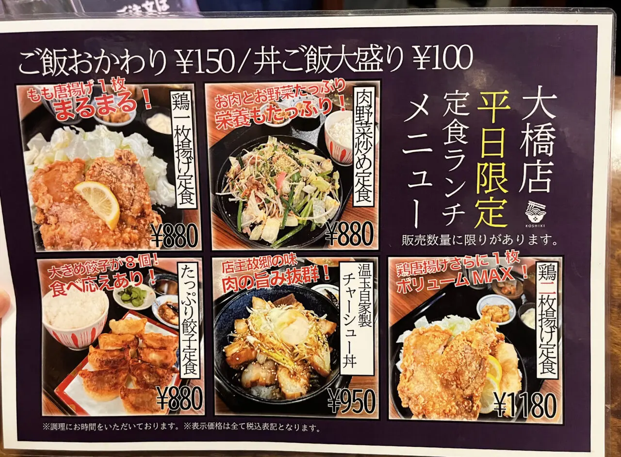 「ちゃんぽん亭コシキ大橋店」ではボリューム満点な定食ランチが平日限定で提供中です。