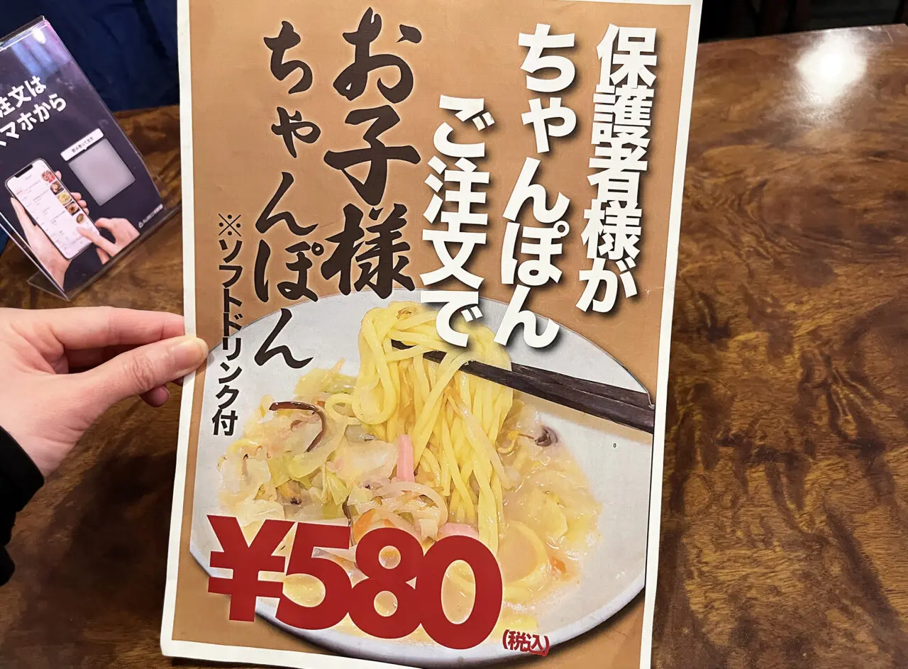お子さん連れも大歓迎! 親御さんがちゃんぽん注文した際は「お子様ちゃんぽん」注文OK。嬉しいジュース付きです♡