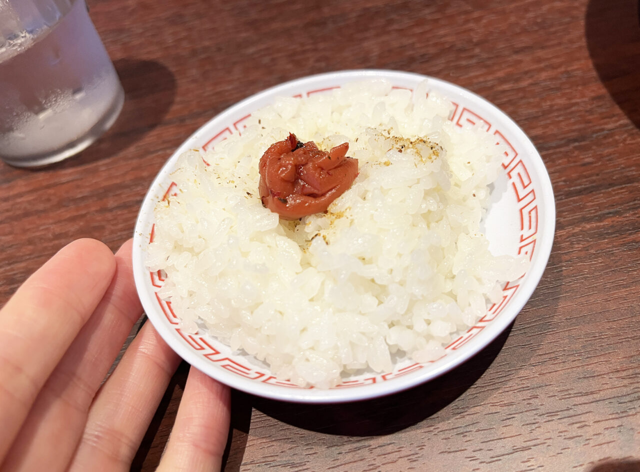 席でしばらく待っているとすぐにやって来ました!ミシュラン直伝メニュー「汁なし担担麺」。九州初上陸でここでしか味わえない「汁なし担担麺」は自家製のタレで味付けされたゴツゴツと粗びきな肉ミンチが最高。そのほかシャキシャキの玉ねぎやフライドオニオンやカシューナッツに柴漬けなど、色々な具材が盛りだくさんなトッピングが素晴らしい。