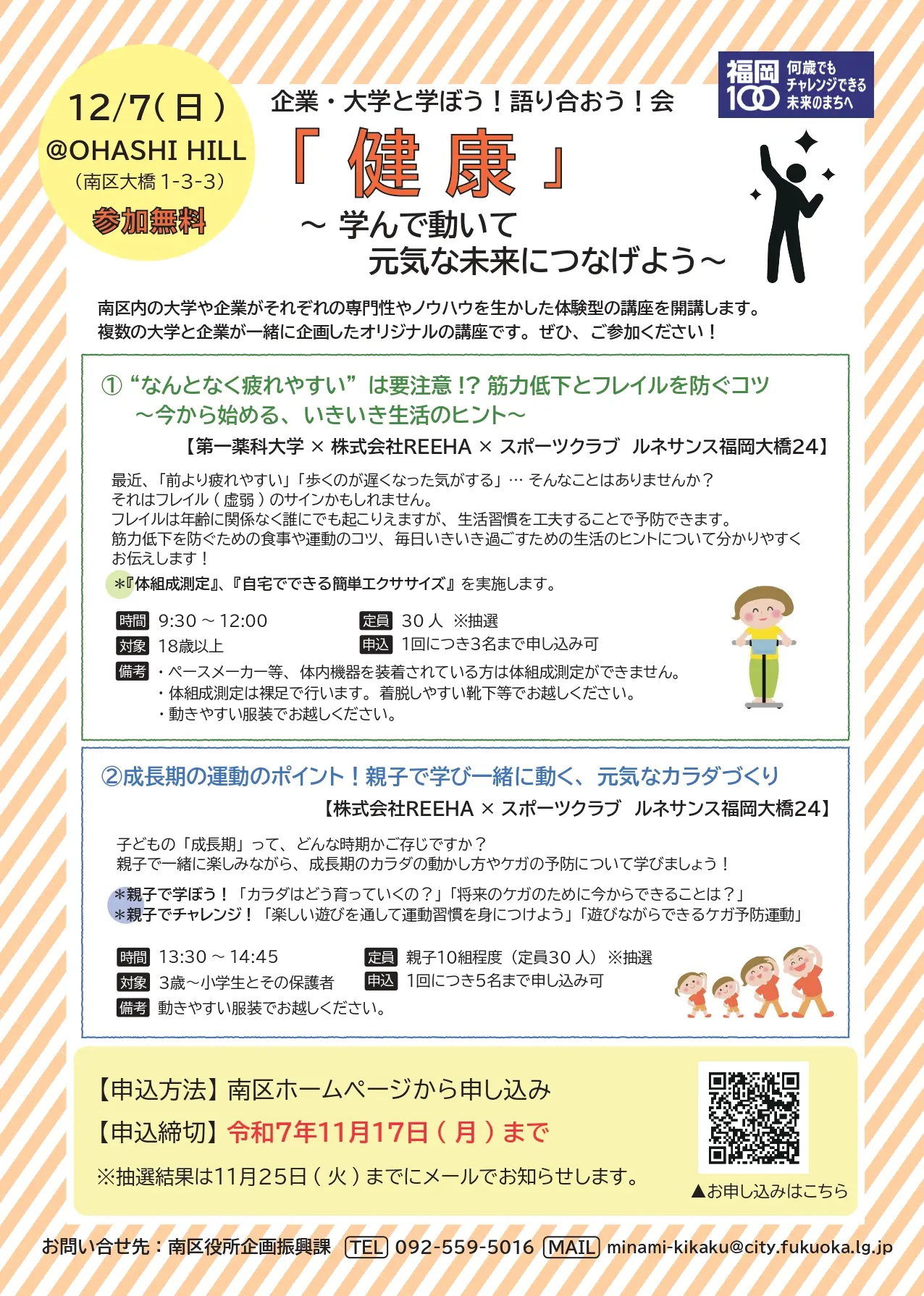 福岡市南区内の企業や大学による「健康」イベントが2025年12月に開催されます!