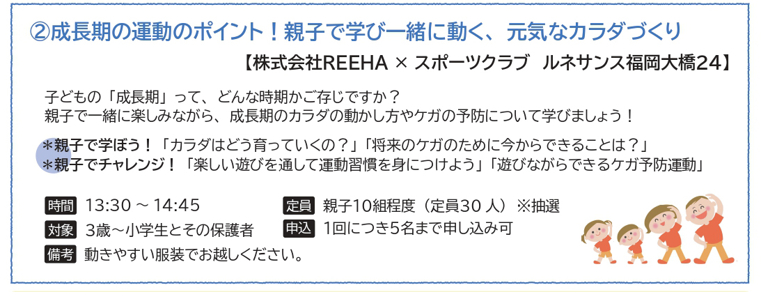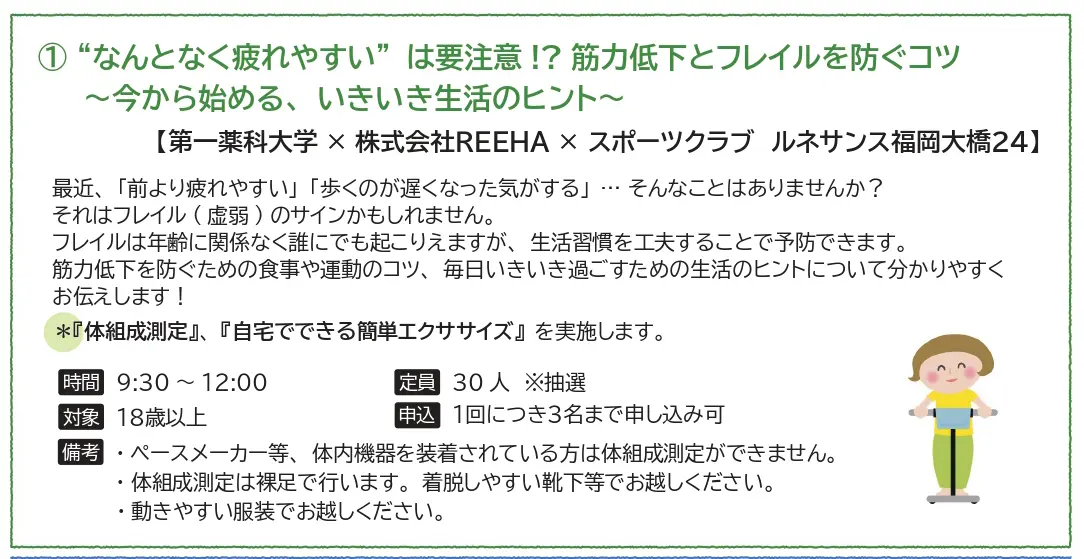 - 実施:株式会社REEHA(リーハ)× スポーツクラブ&サウナスパ ルネサンス福岡大橋24