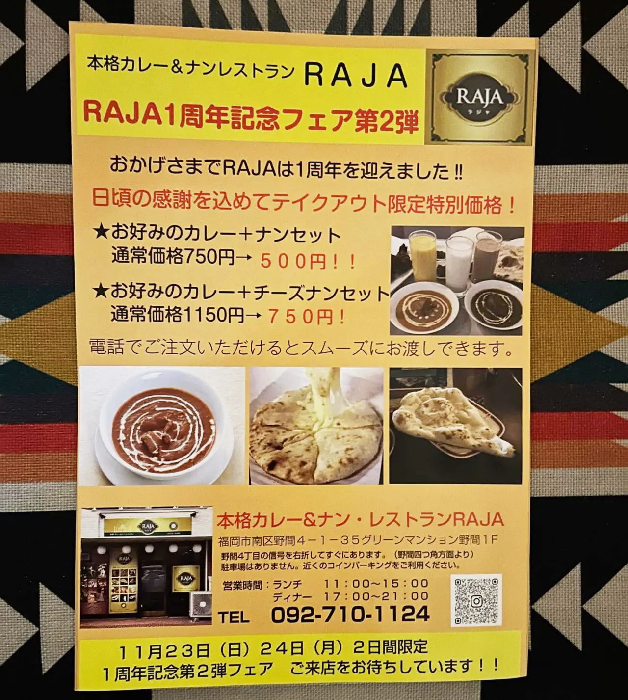 【福岡市南区】野間の本格インドカレー店で11月23日より2日間限定開催の破格キャンペーンとは。1周年記念キャンペーン第2弾!