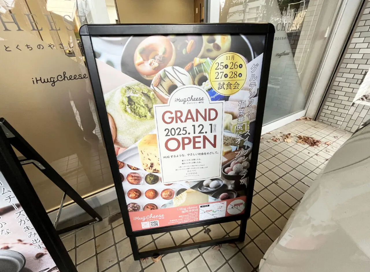 井尻にグルテンフリー専門スイーツ店「iHug Cheese(アイハグチーズ)」が2025年12月1日にオープンしました。営業時間は10時~18時、定休日は土・日曜日です。店舗前には2台のほどの駐車スペースもあります。