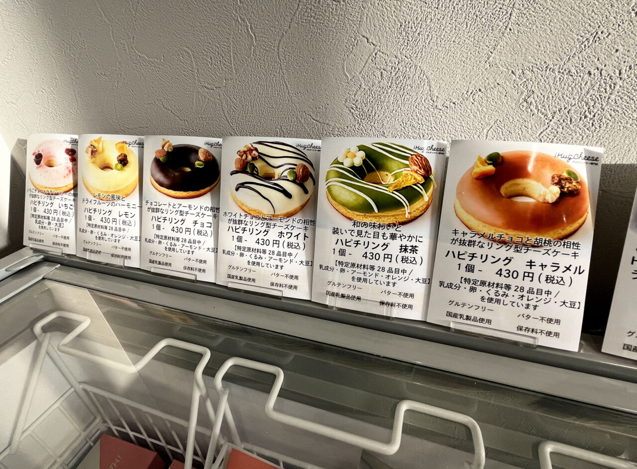 バター不使用・チーズケーキがかわいい手のひらサイズのドーナツ型になった「ハピチリング(全6種類)」(ハピチ=ハッピーチーズの意)や、