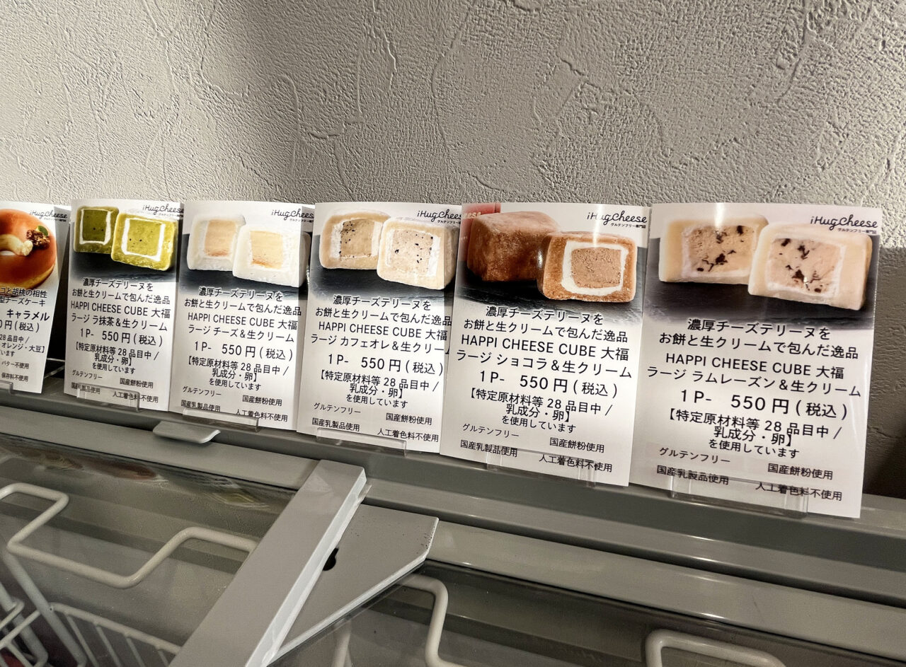 チーズテリーヌと生クリームが入った大福商品なども(5種類)。小さいサイズは生クリーム不使用でさっぱり食べられます! 冷凍商品なので日持ちも3日ほどになっています(再冷凍不可)。気になる方はぜひ♪