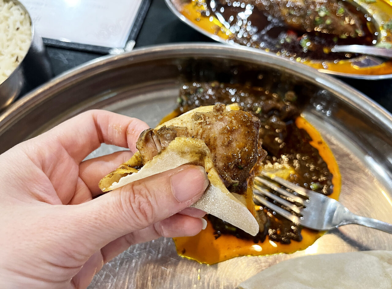 濃厚なチキンとグレービー、柔らかく香ばしいロティの味わいが最高でした。食べ方はモチロン自由ですが、本場Nagpurの食べ方も初めに説明してもらえますよ。ツウの方は現地さながら手で食べる方もいるとか! カトラリーで食べるのもアリなのでご安心を♪
