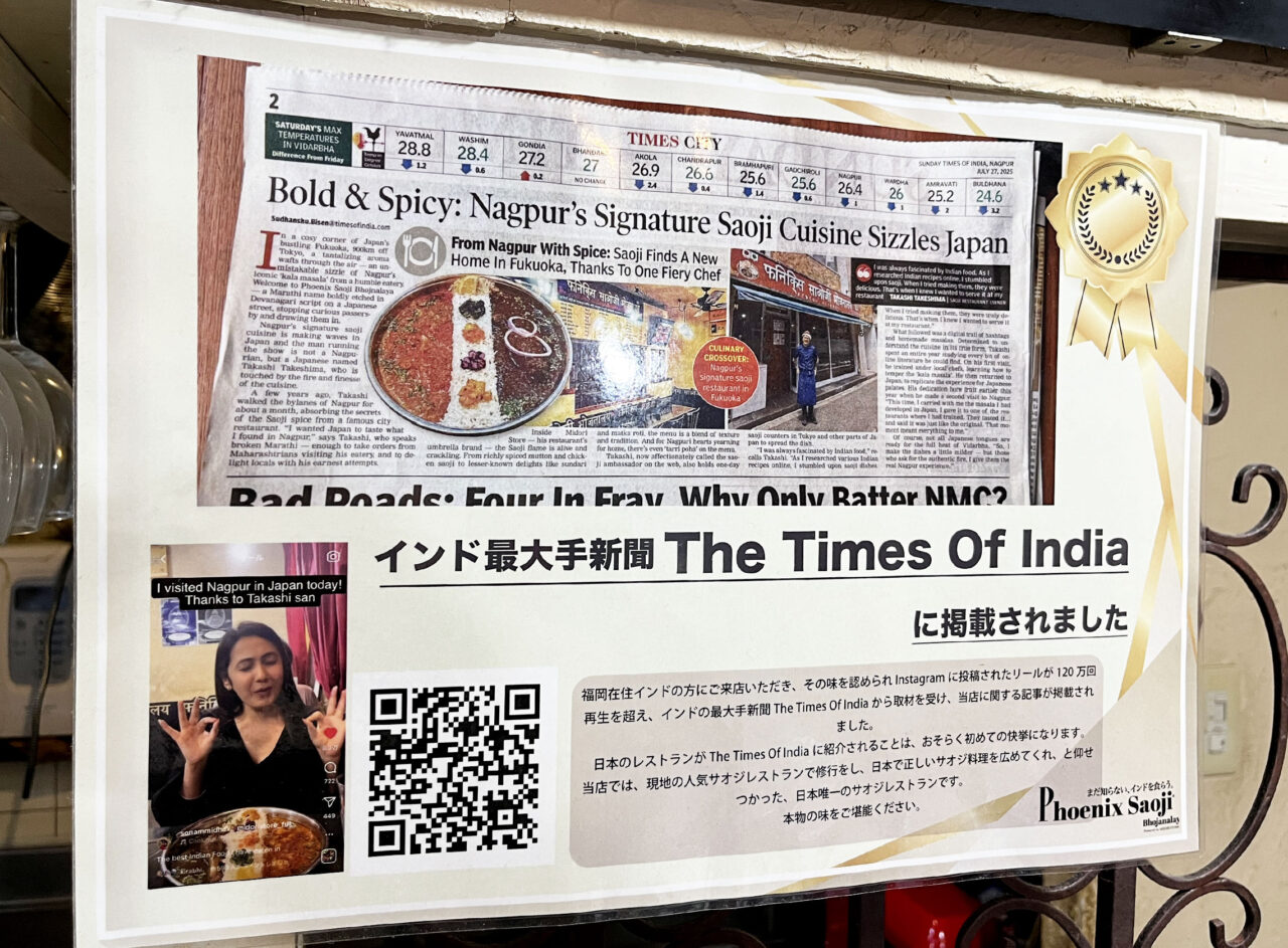 インドのインフルエンサーの方からSNSで紹介され、瞬く間に約178万回再生を記録(2025年12月時点)。ワールドワイドに話題となっているお店です! また人口約14億人を誇るインドの最大手新聞社の新聞記事に「正しいサオジ料理を広めてくれている日本唯一のサオジレストラン」と紹介されています。