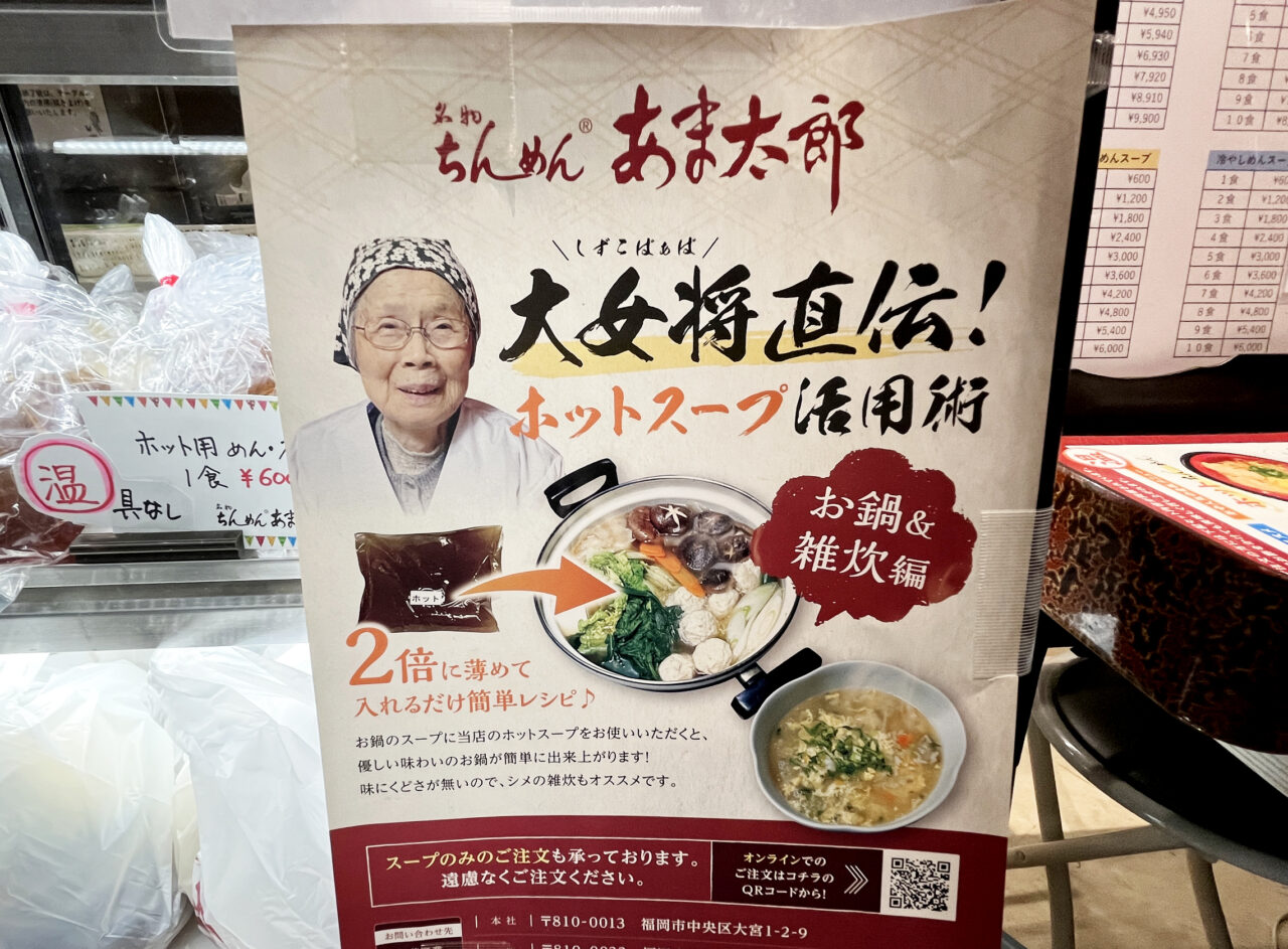 寒いこの時期にぴったりなちんめんあま太郎ホットちんめんはいかが。あっさりとした鶏ダシ醤油スープは福岡で長年親しまれてきた味わいですね♪