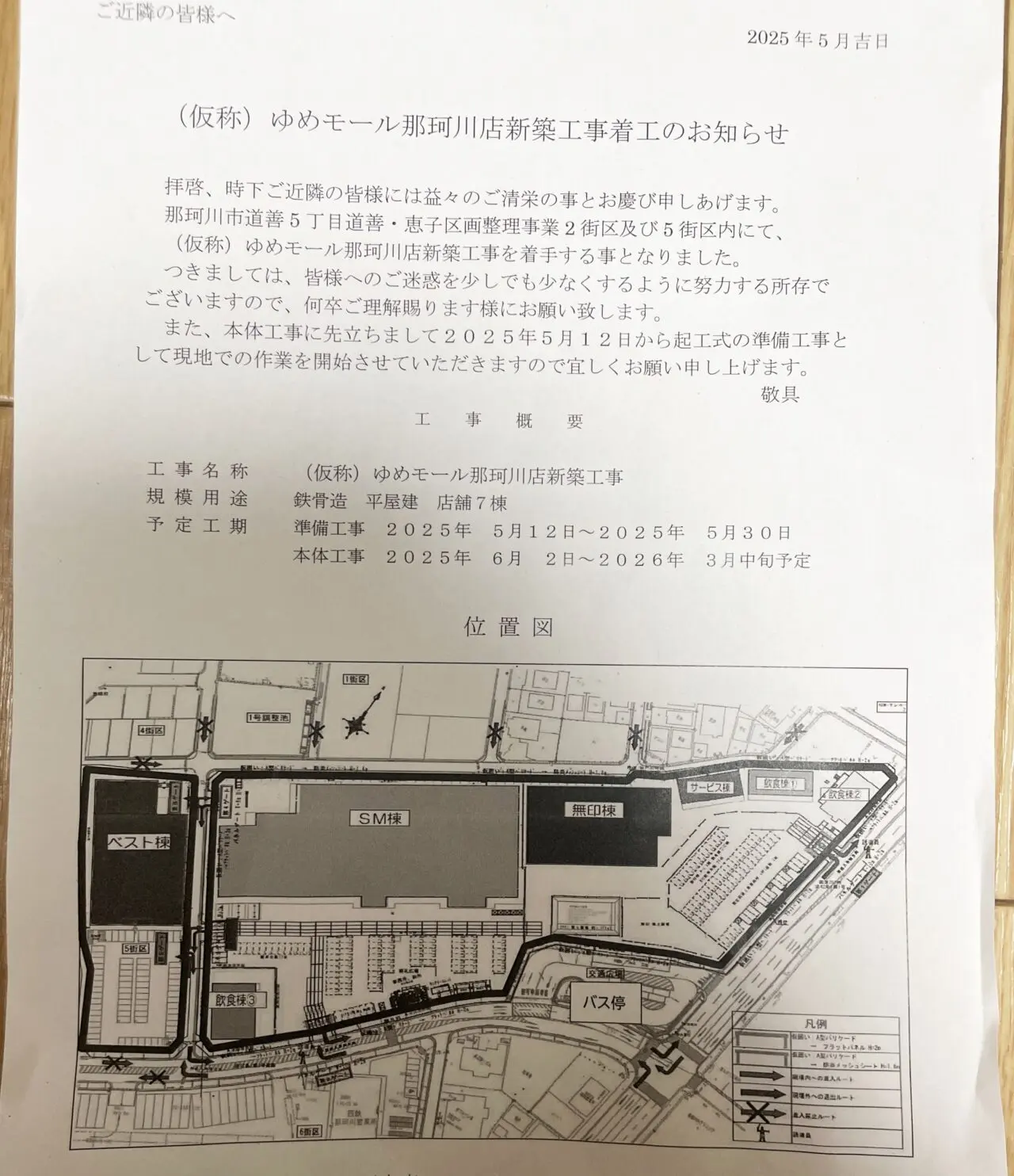 【福岡市南区近郊】老司エリア近く・2026年春開業「ゆめモール那珂川」の工事現場へ行ってみました! 皆さんご存知・人気飲食店の看板などがおめみえ♪