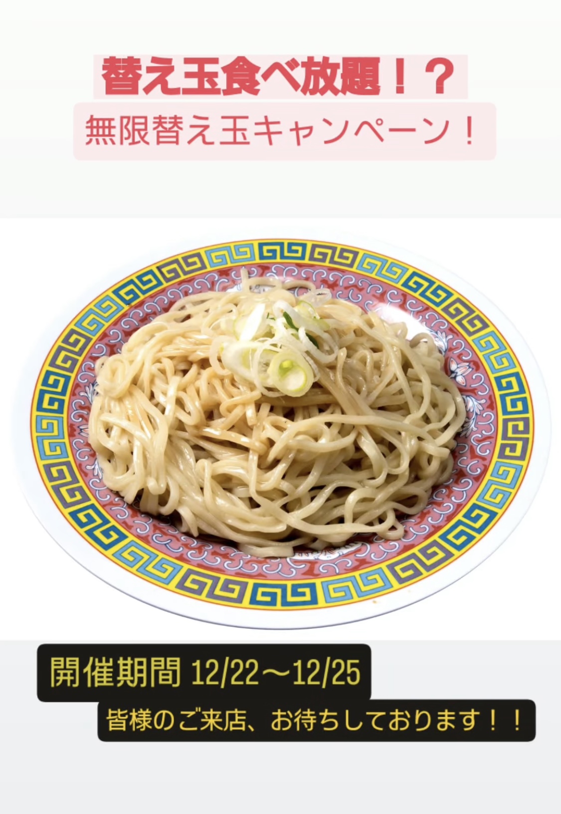 替玉食べ放題!? 無限替玉キャンペーン12月25日まで開催