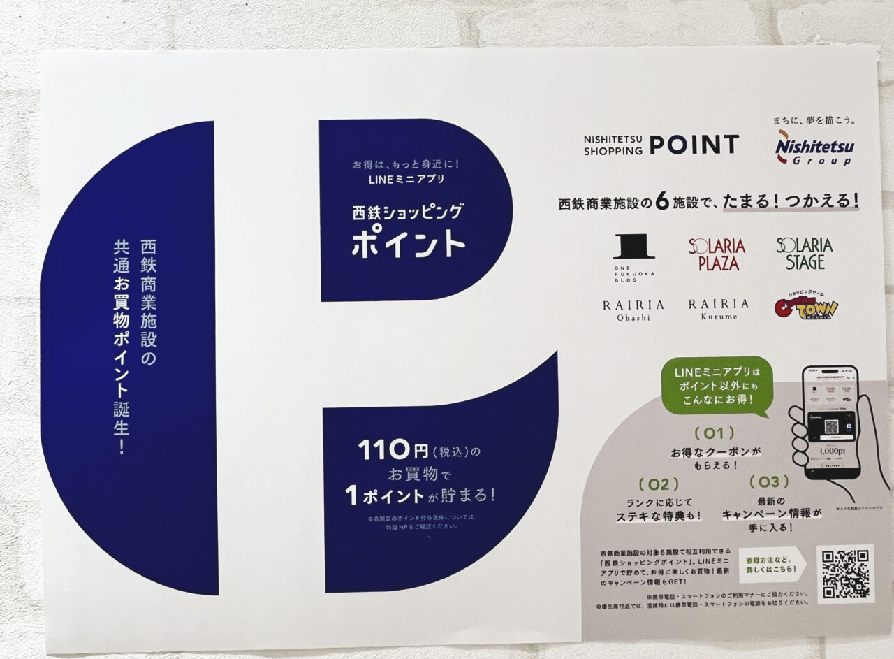 西鉄が運営する商業6施設でたまる! 「西鉄ショッピングポイント」のサービスが2025年12月1日よりスタートしているのをご存知ですか。(ワンビルでは導入済み)