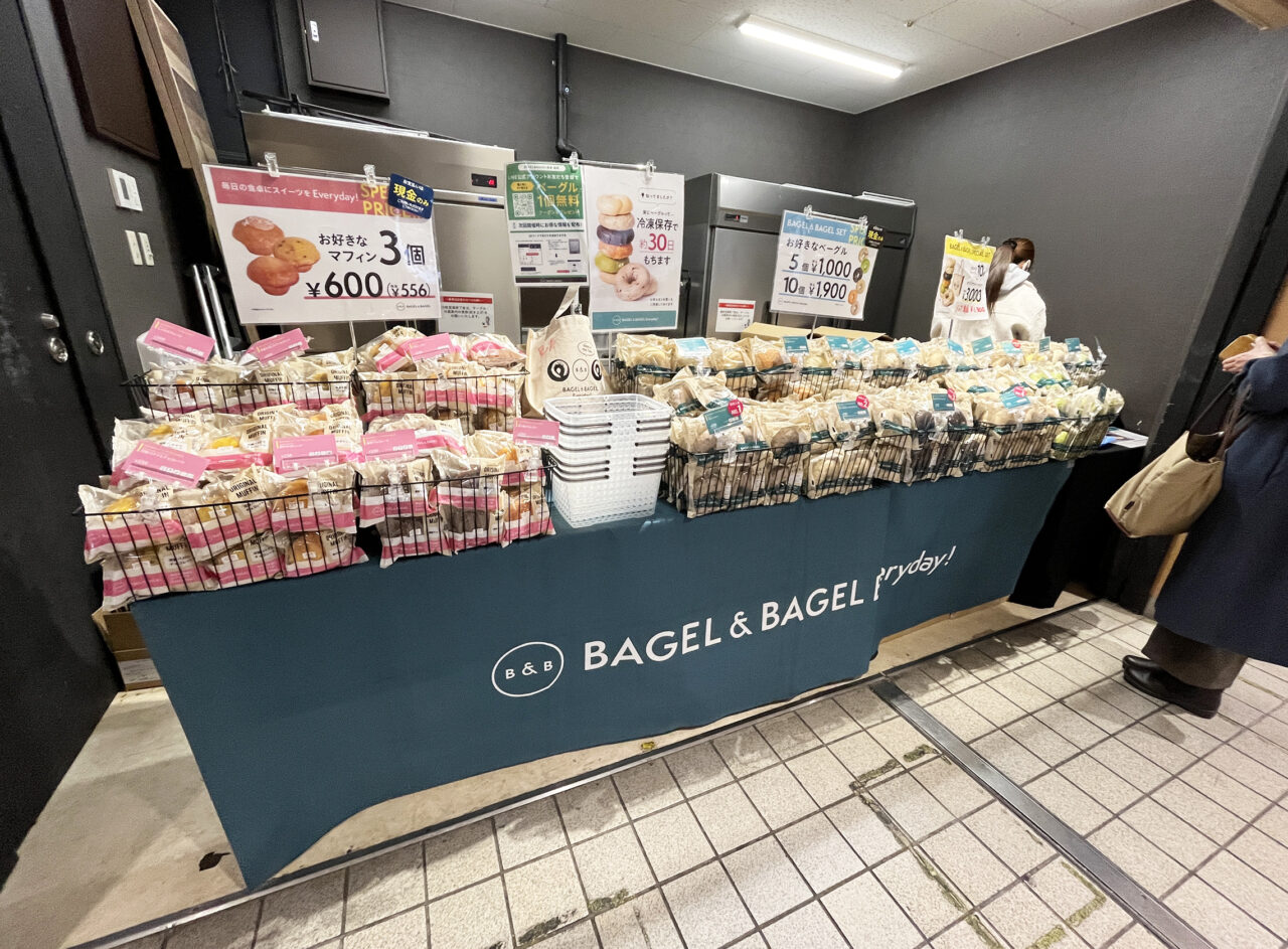 今回初めて製作された「BAGEL & BAGEL」のオリジナルトートバッグは、他では購入できない催事販売限定商品! 北海道・大分・鹿児島で販売され、今回福岡・大橋でも販売されています(2026年1月時点)。