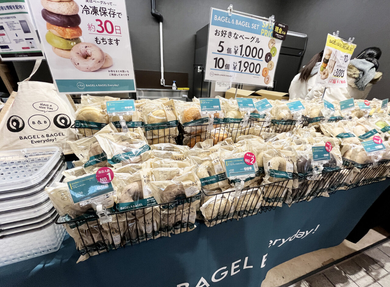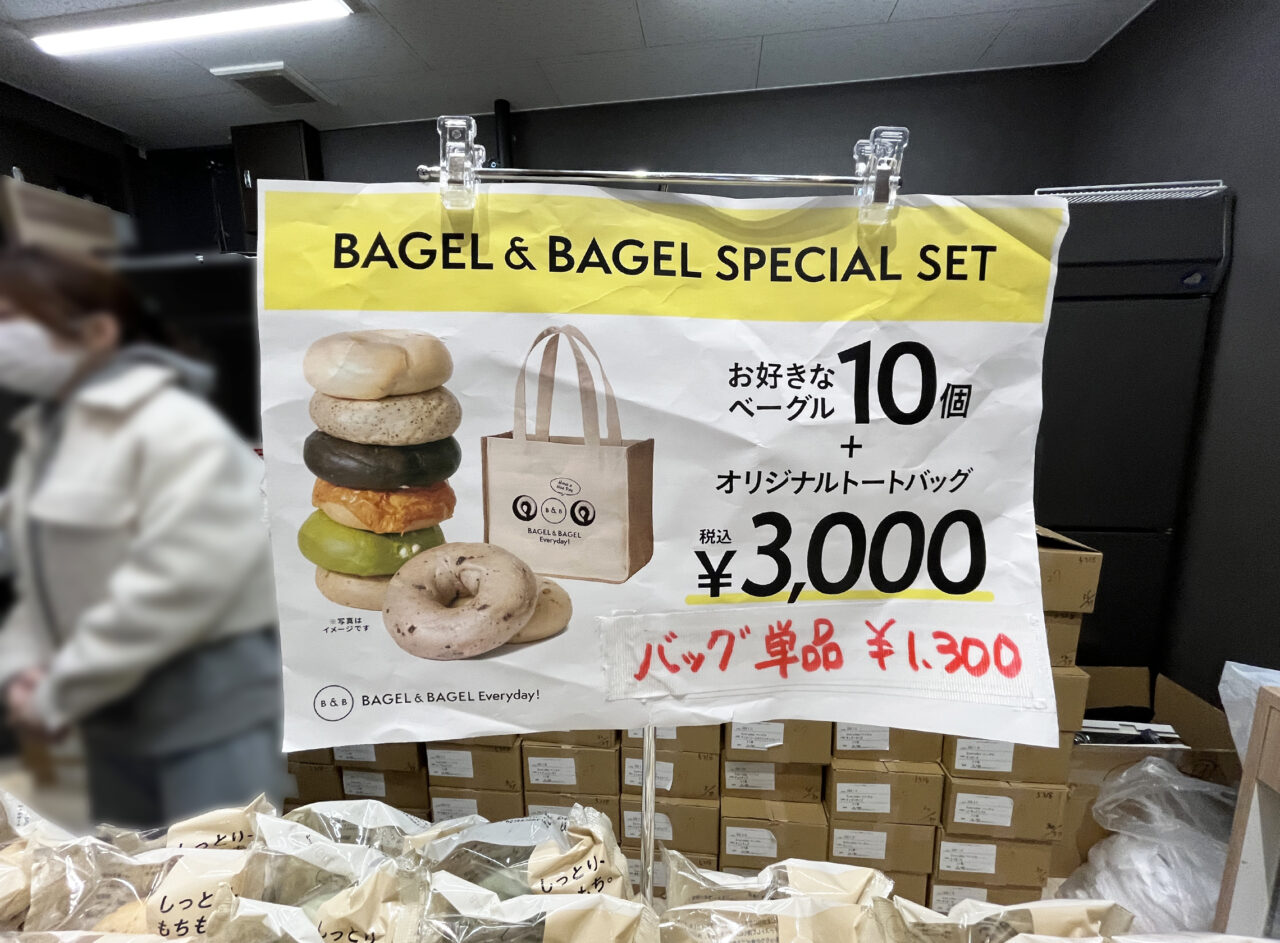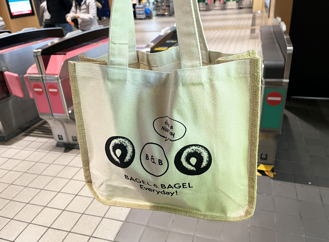 今回初めて製作された「BAGEL & BAGEL」のオリジナルトートバッグは、他では購入できない催事販売限定商品! 北海道・大分・鹿児島で販売され、今回福岡・大橋でも販売されています(2026年1月時点)。