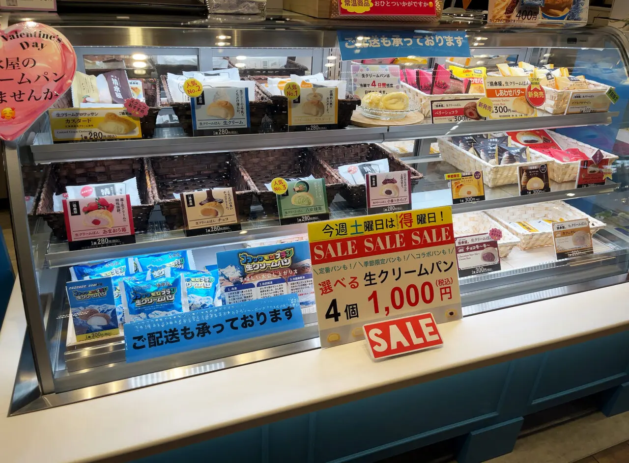 毎週水曜日は、美味しい生クリームパンがなんと4個で1000円になる特価DAY! 土曜日も毎週ではないそうですが、たまに特価販売をされているそうです。