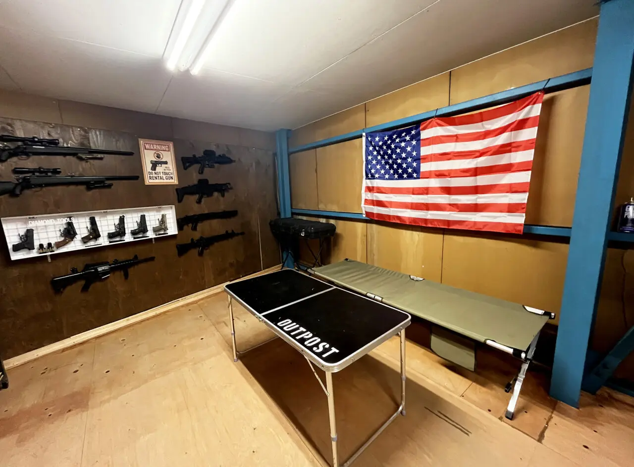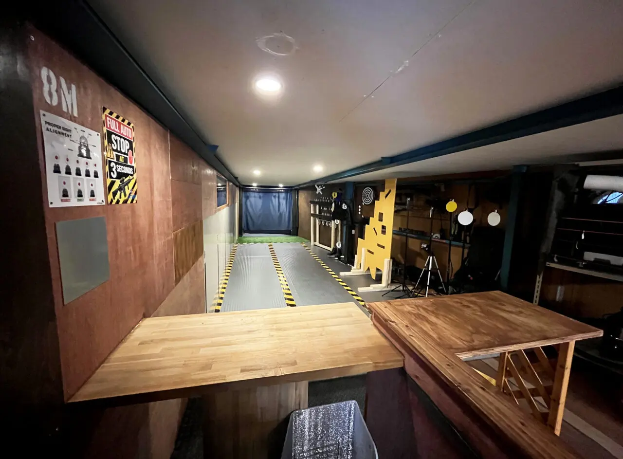 「OUTPOST SHOOTING RANGE」はオーナーさんのDIYで作られたコンパクトな施設! 8mレーンと10mレーンの合計2本のレーンが設置されています。