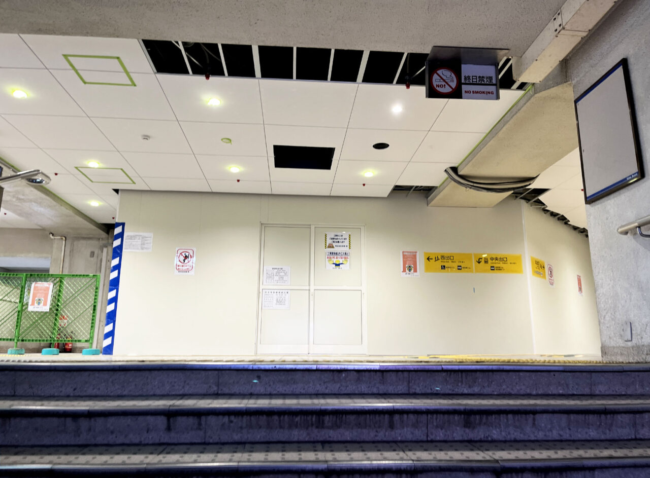 2026年2月中旬、高宮駅へ行ったところ「高宮駅改札外コンコース」のリニューアル工事がスタートしていました。以前お知らせしていた「西鉄グループ2025年度計画」の一環ですね。