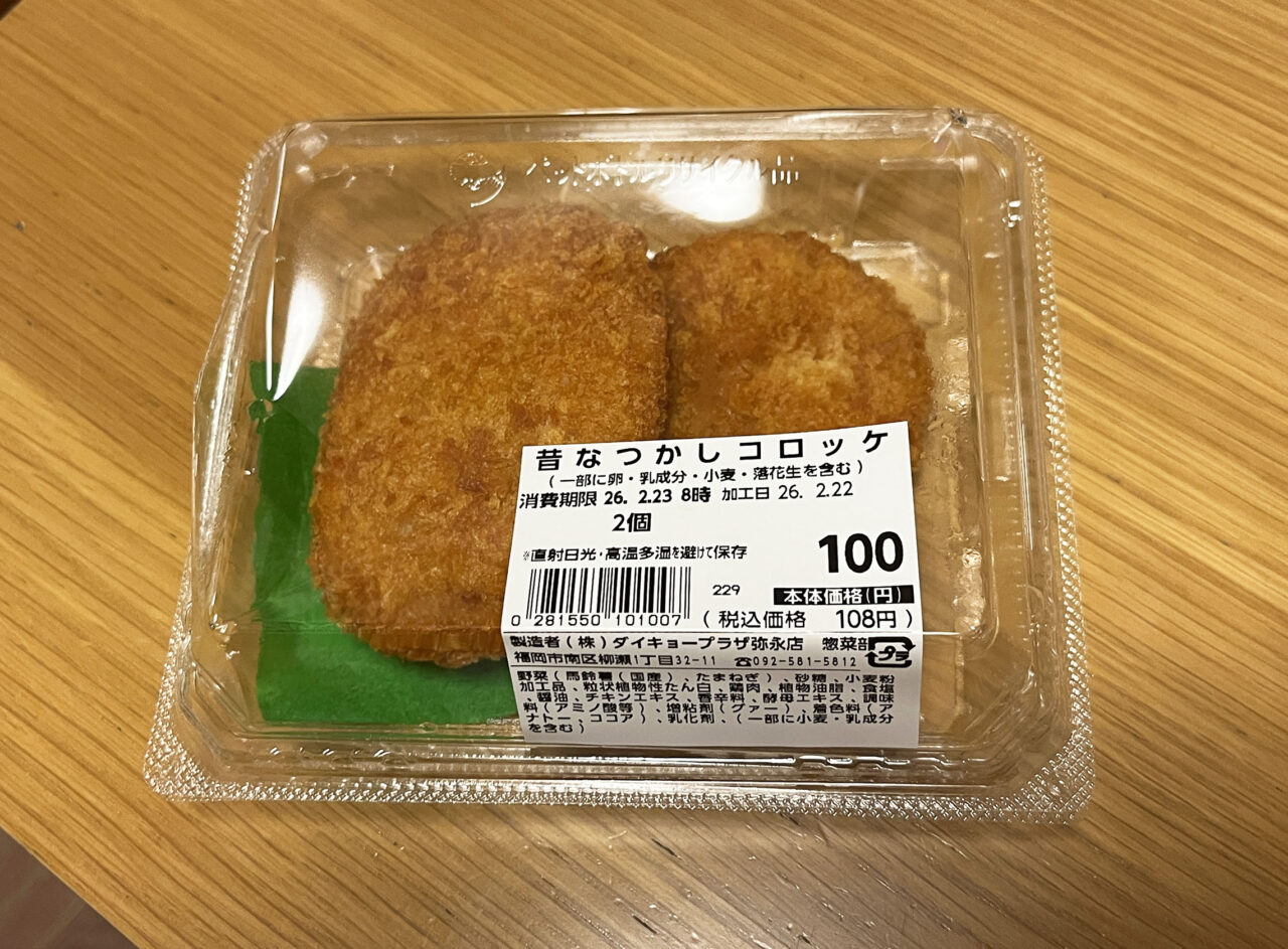【福岡市南区】お弁当・お惣菜大賞のコロッケ部門で入選 「ダイキョーバリュー弥永店」のパリパリ食感「皿うどんコロッケ」を実食。昔ながらのコロッケも