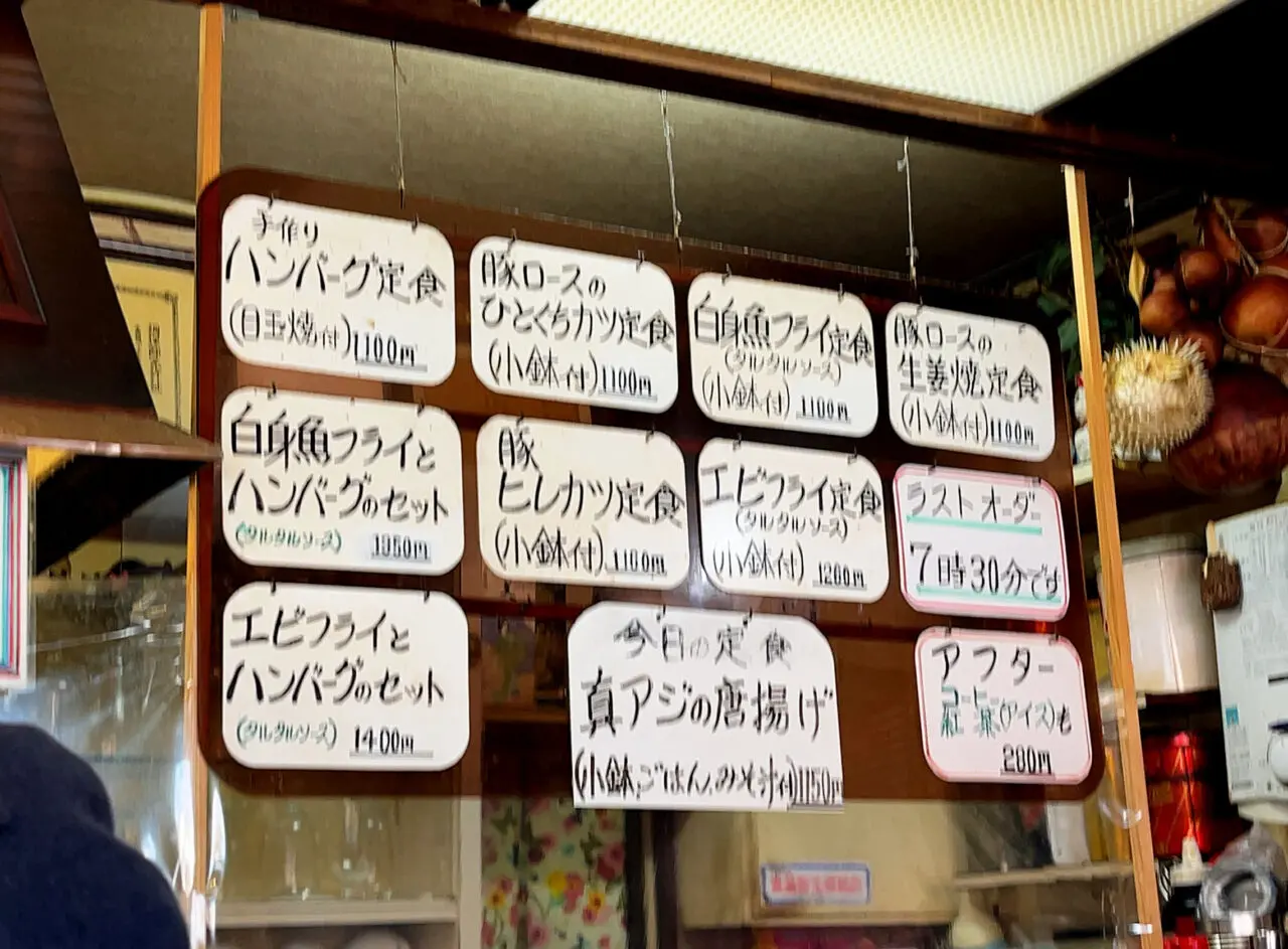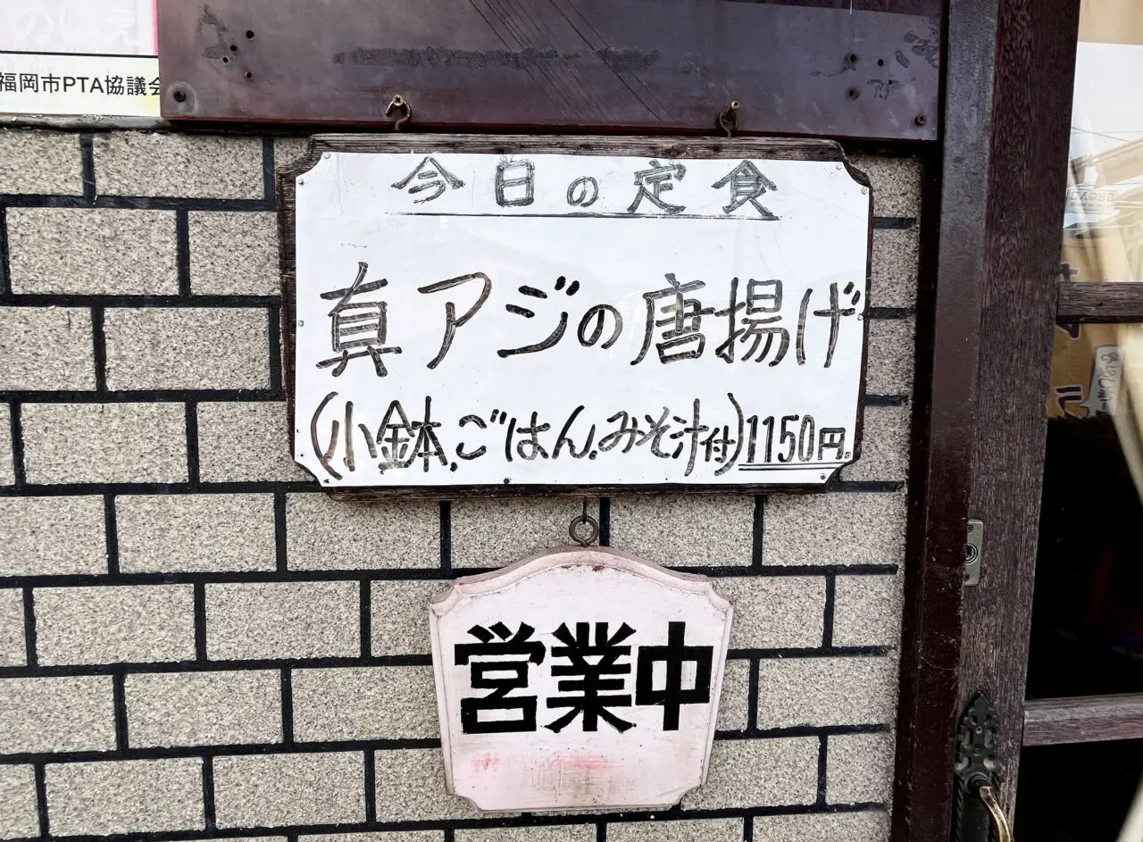 この日の、今日の定食は「真アジの唐揚げ(小鉢・ごはん・みそ汁付)税込1150円」となっていました。