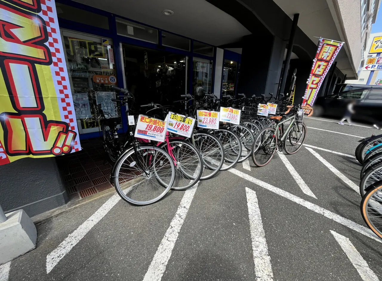 店頭や店内にはたくさんの自転車が特価販売されていました。
