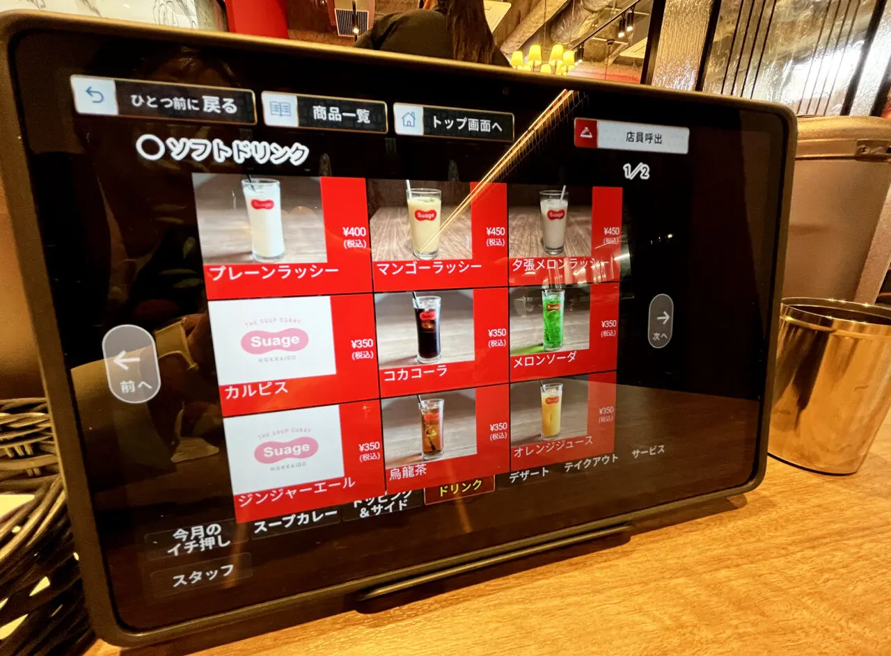 ドリンクメニューにはラッシーのほか夕張メロンラッシー などもある