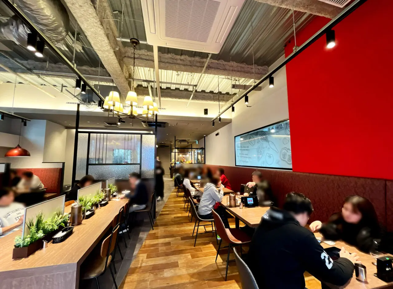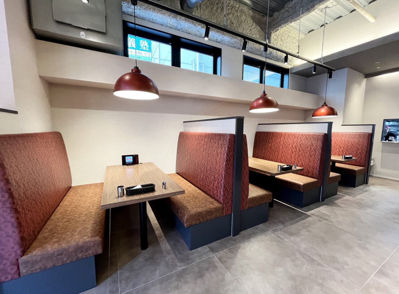 店内はモダンでお洒落なソファー席のほかテーブル席、お1人さまでもゆっくり楽しめるカウンター席など50席ある広々とした店内。温もりを感じるインテリアに包まれた新しい店内では、スタッフの明るい声が行き交い、心地よい空間が広がっています。