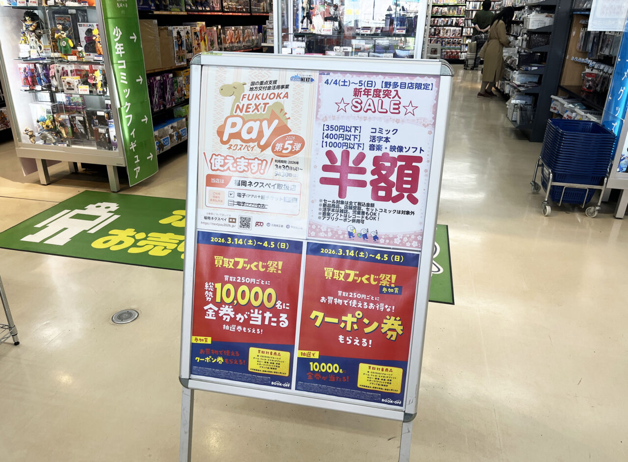 そのほかレイリア大橋内の店舗や、ブックオフなどの書店や雑貨店など幅広いカテゴリー、福岡市内で利用できるのもありがたいですね。この機会にぜひ。