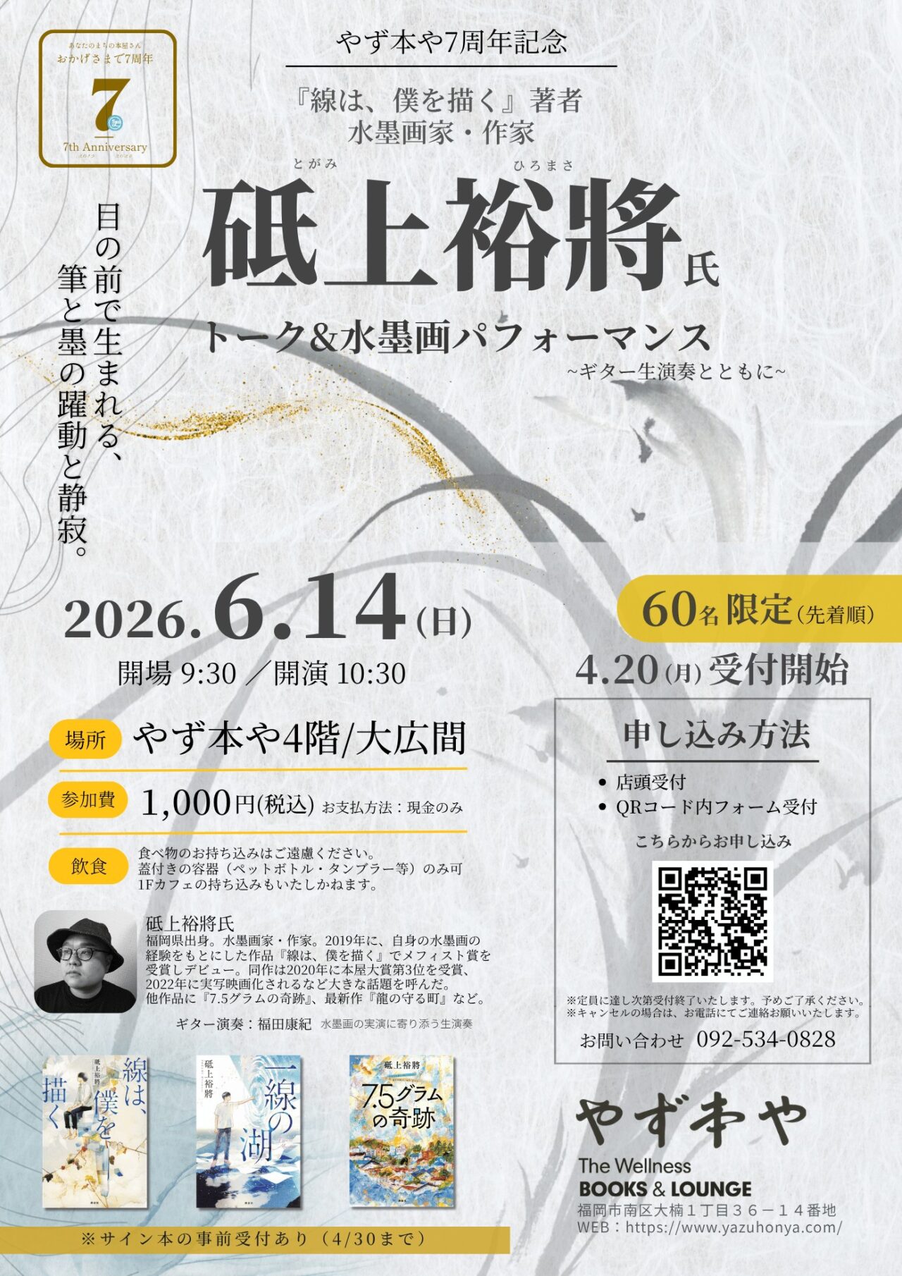 【福岡市南区】大楠の「やず本や」が7周年祭イベント申込みを受付中。 水墨画による躍動と静寂を肌で感じるひと時をこの機会にぜひ! 先着60名限定イベント