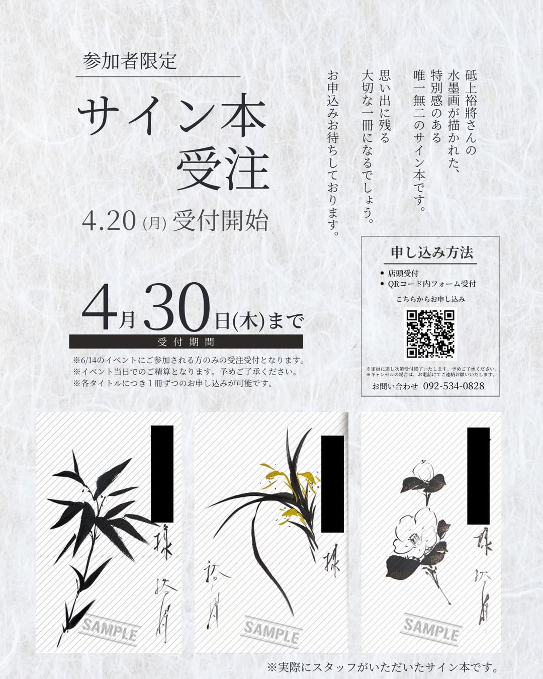 砥上裕將さんのトークイベント開催を記念して、イベント参加者限定で特別な「サイン本」の受注を受付中です。このサイン本でスゴイのは、なんとサインだけでなく一点一点に「水墨画」を描き下ろしてくださる、まさに一点モノ!