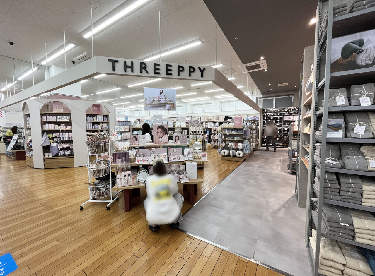 「Standard Products」フロアの隣には、淡いパステルカラーの色合いやフェミニンなデザインが人気の雑貨小物店「THREEPPY」も。インテリア雑貨からファッション雑貨まで幅広い商品ラインナップとなっており、たくさんの女性の方々が買い物を楽しまれていましたよ♪
